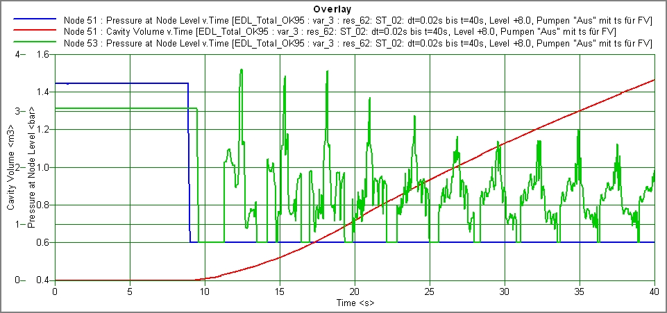 Abbildung 6: Berechnetes Kavitationsvolumen an einem lokalen Hochpunkt, beim Kollaps entsteht ein Druckstoß der Größe von p=10,5 bara