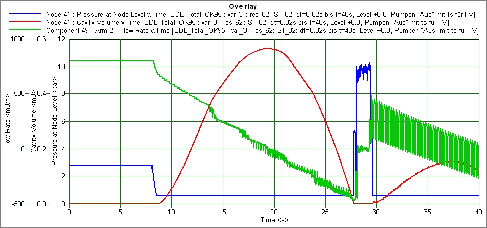 Abbildung 5: Abreißen des Stromfadens am lokalen Hochpunkt des Systems, die Kavitation wird durch einen Pumpenausfall provoziert
