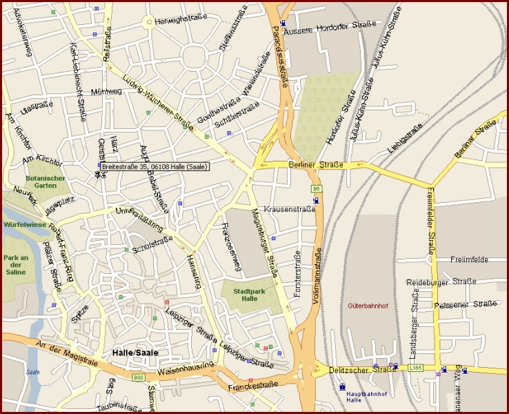 Sie sind hier: Startseite » Kontakt » Anreiseskizzen » Ausschnitt 3 Ausschnitt 3 Breite Straße 35, Nähe Mühlweg- und Paulusviertel