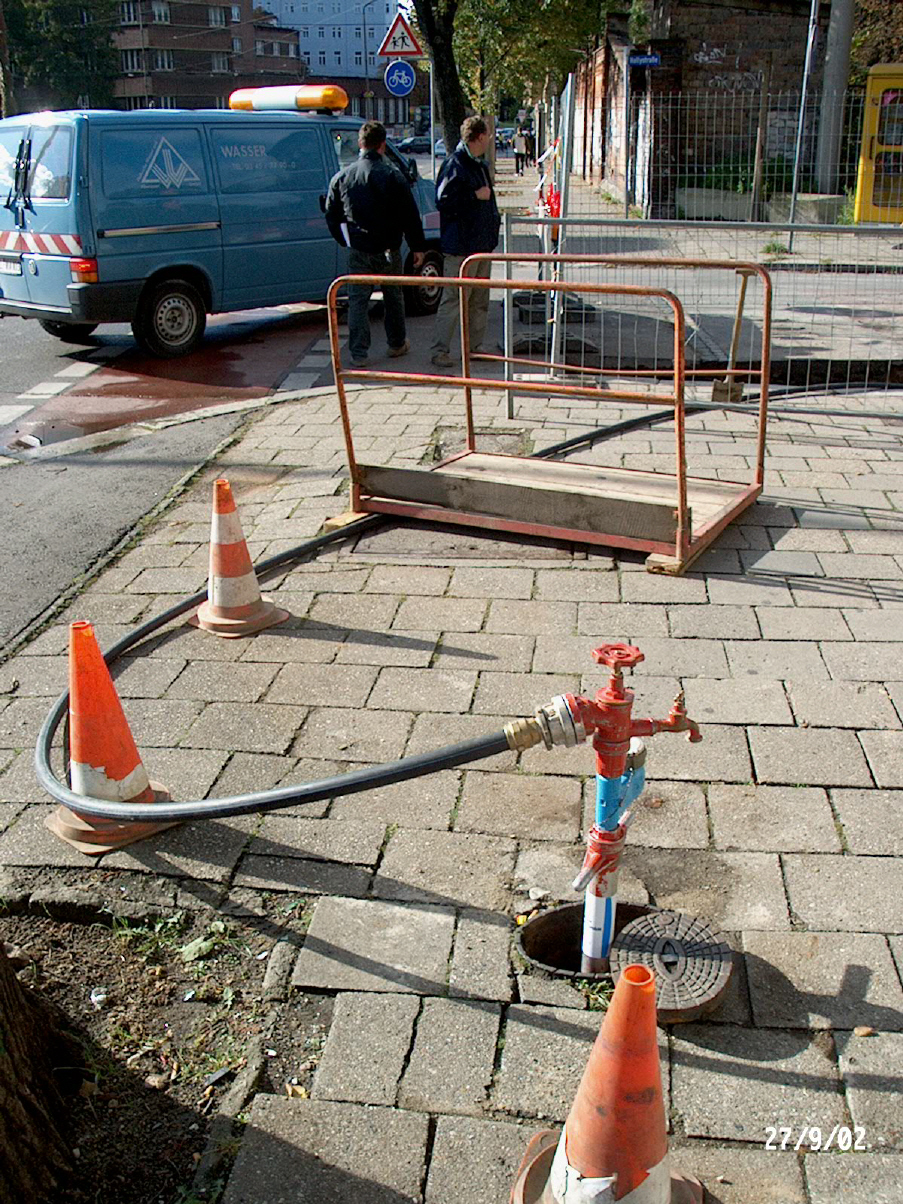 Planung und Bauleitung bei der Erneuerung einer vorhandenen Trinkwasserleitung durch PE-HD Material der Nennweite DN 150 mit Hausanschlüssen im innerstädtischen Bereich